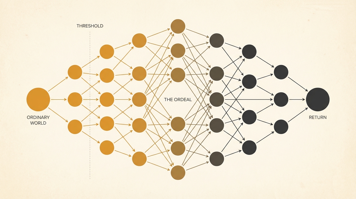 The numbered list format does something subtle and damaging: it makes each stage look independent. Complete stage one, move to stage two. Check off Meeting the Mentor, advance to Crossing the Threshold. This reading treats the hero's journey the same way a recipe treats ingredients. Add them in order and you will get the result.